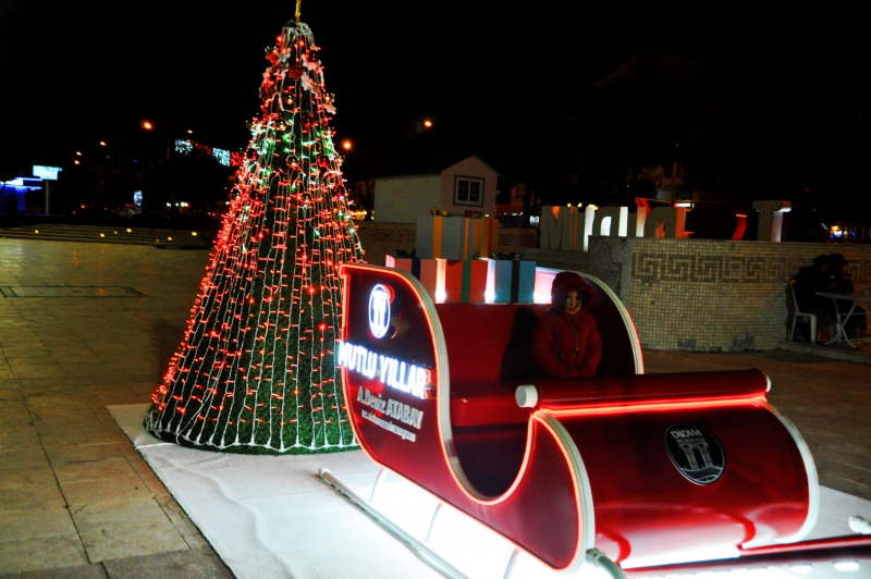 Didimde Noel Baba Ren Geyikleri ve Yılbaşı Ağacı