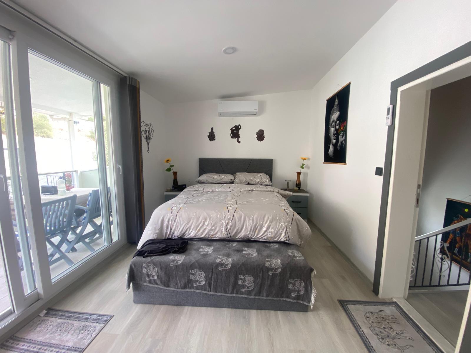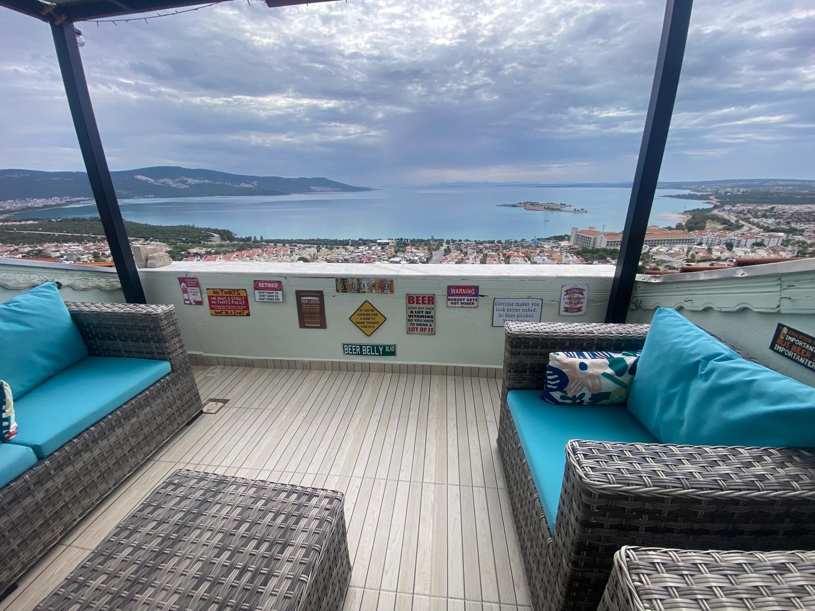 Manzara ve Teras: Ege'nin büyüleyici deniz manzarasını her an izleyebileceğiniz geniş balkon ve muhteşem bir teras alanı.