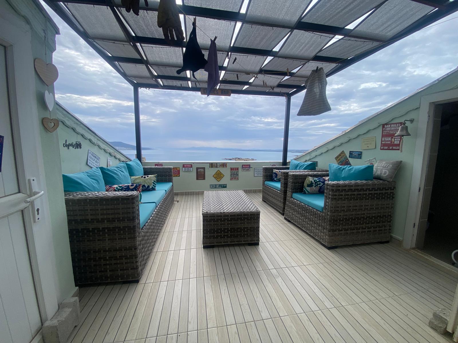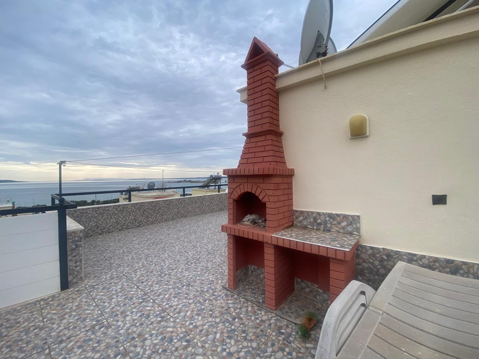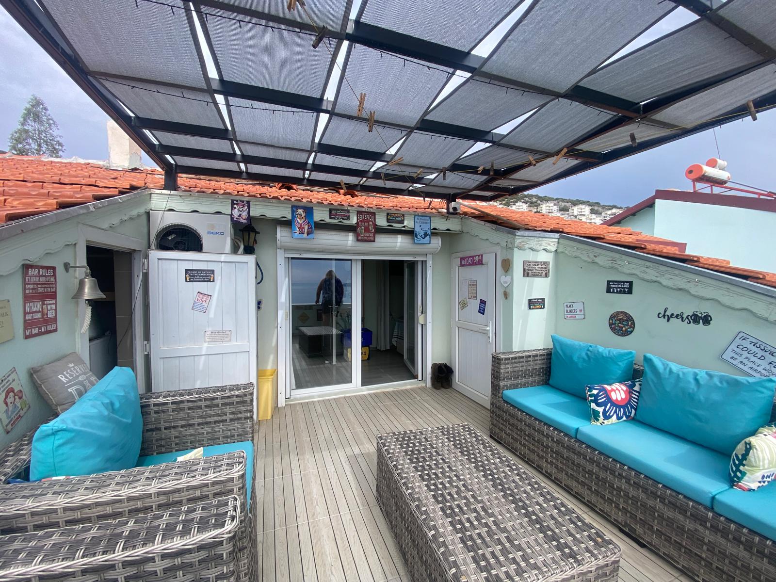 Açık Alan Konforu: Terasın bir kısmı gölgelikli sistemle kapatılmış olup, deniz manzarasına karşı keyif yapabileceğiniz geniş bir oturma grubu mevcuttur.